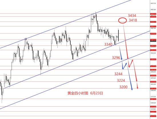 黄金上周正如预期,3440附近反转走了红线分析,3340也到位。从图形来看,今日早盘虽然跳空高开,但高开低走,本周初,继续关注3340区域强支撑,在没成功跌破前,继续在上方震荡盘整的概率较大些,而上方3418和3434仍是强阻力,还是建议选择高空为主方向,若周一直接跌破3340则再择机进场做空,波段思路仍延用上周一框架,波段目标仍 是3296和3274和3244和3224,最远3200一线重点值得关注。本周操作建议灵活些,今日没有具体操作建议。