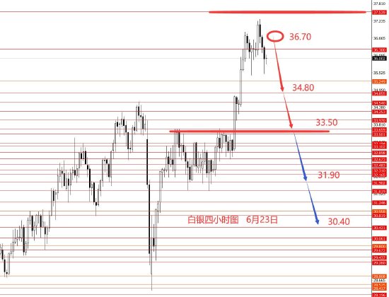 白银上周正如预期冲高回落,周图收阴柱。从图形来看,本周建议逢高做空白银,先按回调行情先做,下方重点关注33.50一线强支撑,若能下破才能看向更低。本周操作建议:36.70-36.80区域做空白银,止损37.80,目标看向34.80和34.00和33.50区域。若33.50成功跌破再看向31.90和30.40区域。控制仓量,严格止损。